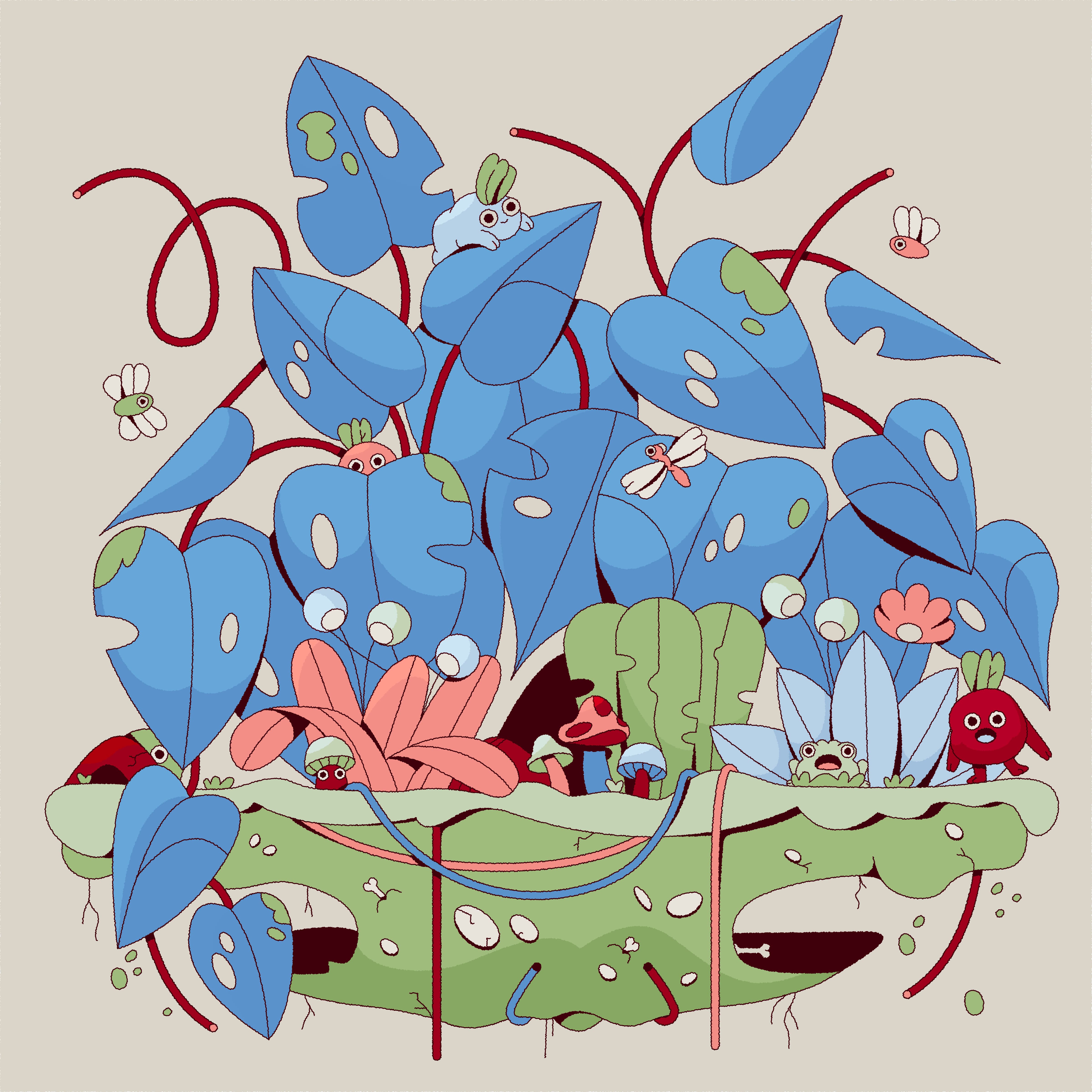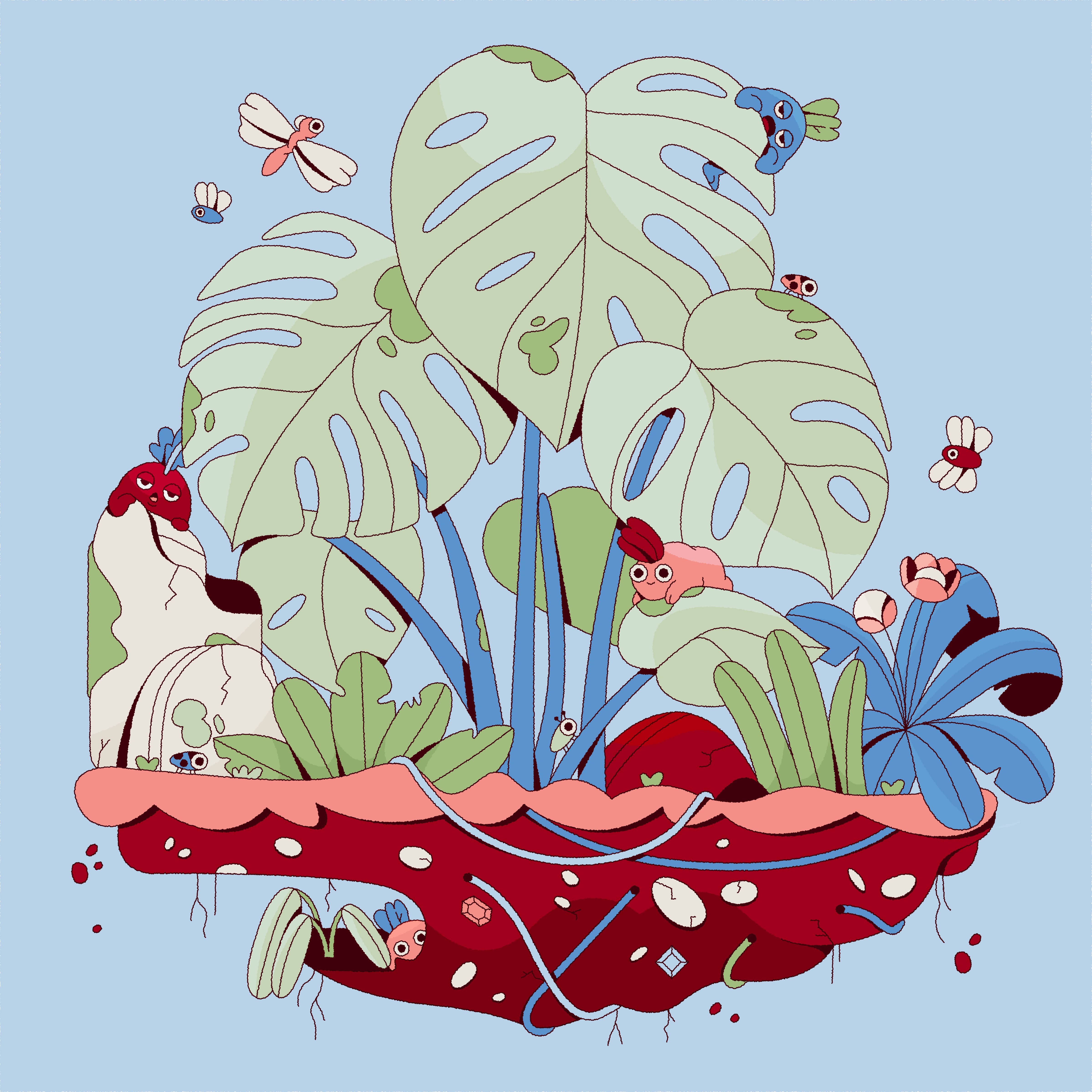 "Plant Island" is a whimsical and imaginative project that fuses the natural beauty of houseplants with the enchanting presence of mythical creatures. Featuring lush species like Monstera deliciosa, Ficus microcarpa, and cascading Pothos, each plant becomes a vibrant micro-ecosystem teeming with life. Hidden within the foliage are magical creatures subtly woven into the scenery, inviting viewers on a visual treasure hunt. With every glance, new details emerge, turning the experience into a playful exploration where nature and fantasy coexist in harmony.